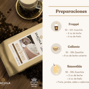 Base en polvo Zaachila Gourmet para preparar frappes, smoothies, malteadas y hasta bebidas calientes. —————– PACK 16 BOLSAS —————— Base neutra, cajeta, cappuccino, cappuccino prime, cereza, chesecake, choco avellana, chocolate blanco, cookies & cream, cotton candy strawberry, fresa sandía, irish cream, just latte, matcha, mazapan, mocha, mocha intenso, mora azul, pay de limón, pepino limón,…